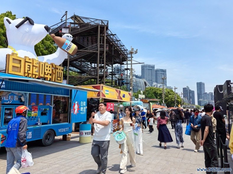 在国际区,星巴克移动咖啡车携全新臻选冷萃新品登场,历经20小时低温慢萃,为假期出游的游客带来沁爽的咖啡体验;旁边的肯德基KCOFFEE咖啡车以一抹亮色跃入公众视野,透过敞开的柜台窗口便可选择各色咖啡饮品和小食;Lavazza拉瓦萨则围绕红香蜜李交响曲咖啡豆,打造了两款创意特调——荆花蜜美式、荆花蜜水牛乳拿铁,将新品咖啡豆的香气融入江风。
